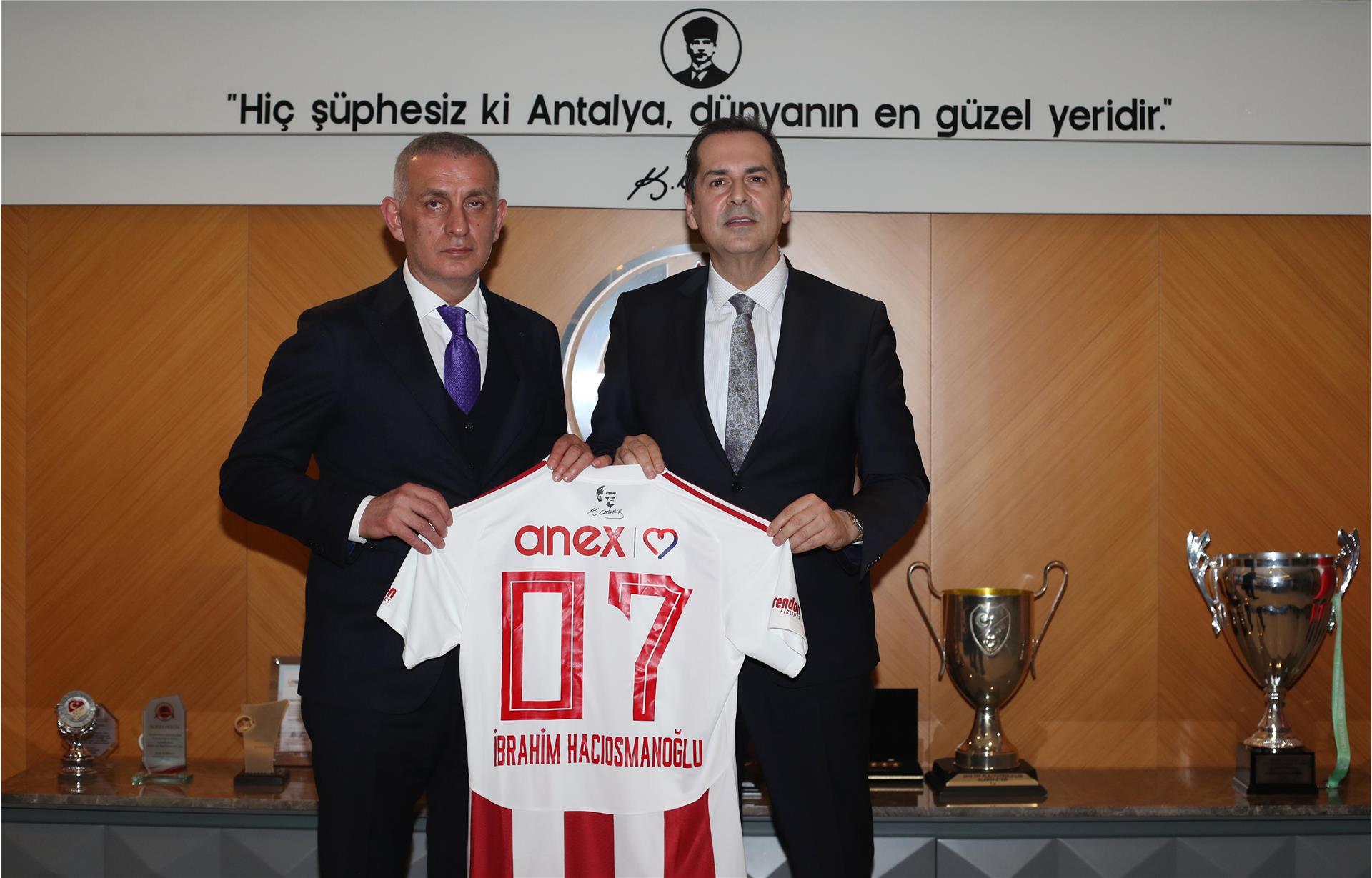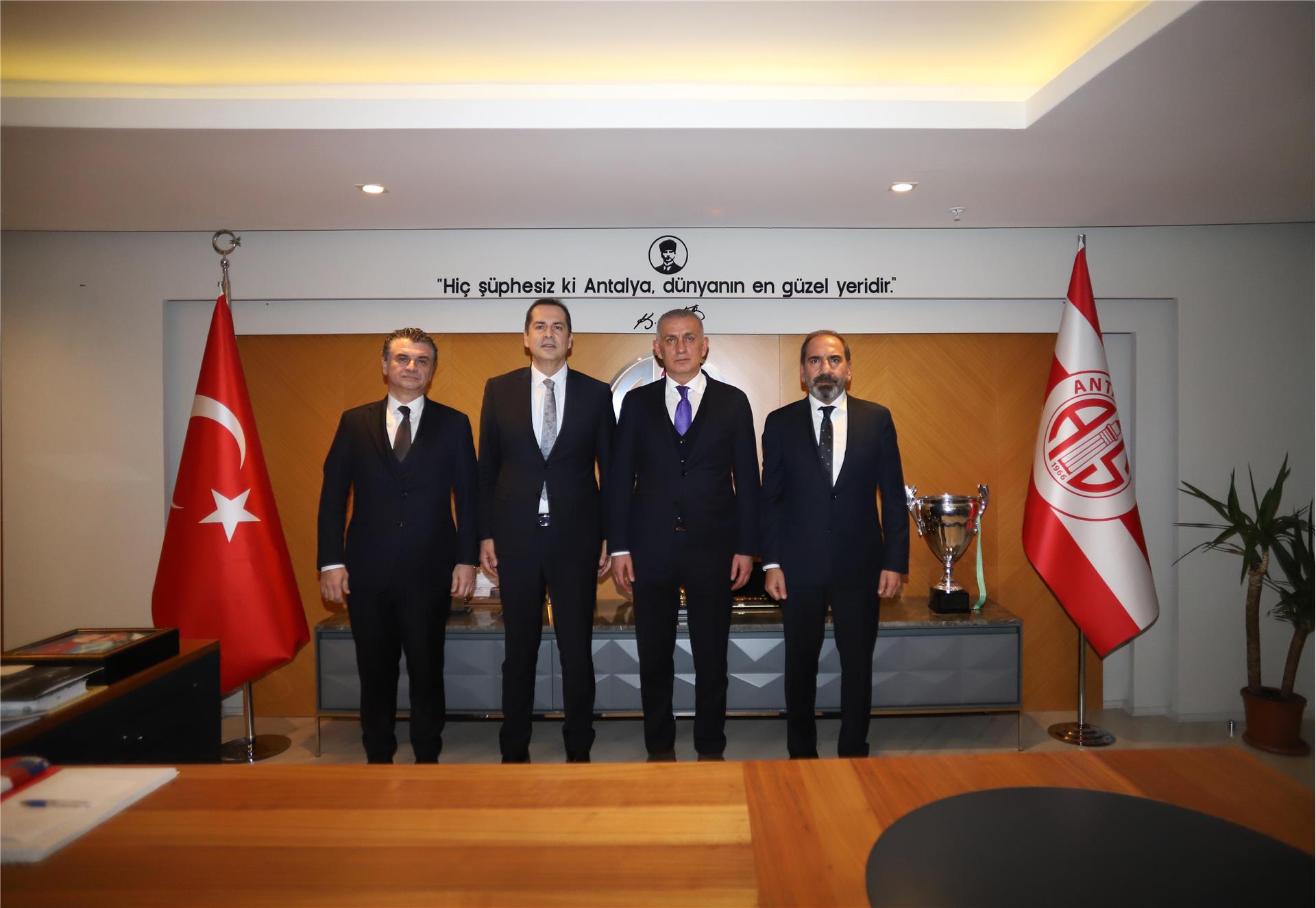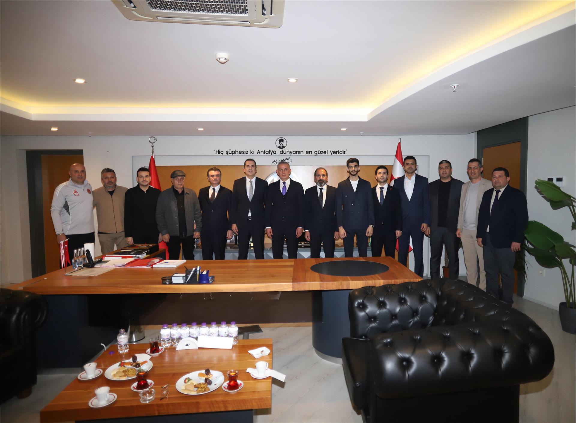 Türkiye Futbol Federasyonu Başkanı Sayın İbrahim Ethem Hacıosmanoğlu, 1. Başkan Vekili Sayın Mecnun Otyakmaz, 2. Başkan Vekili Sayın Fuat Göktaş ve TFF yetkilileri, Atilla Vehbi Konuk Tesisleri'ni ziyaret ederek Başkanımız Rıza Perçin, Antalyaspor AŞ ve Antalyaspor Kulübü yönetim kurulu üyelerimiz ile Teknik Direktörümüz Sami Uğurlu ile bir araya geldi.